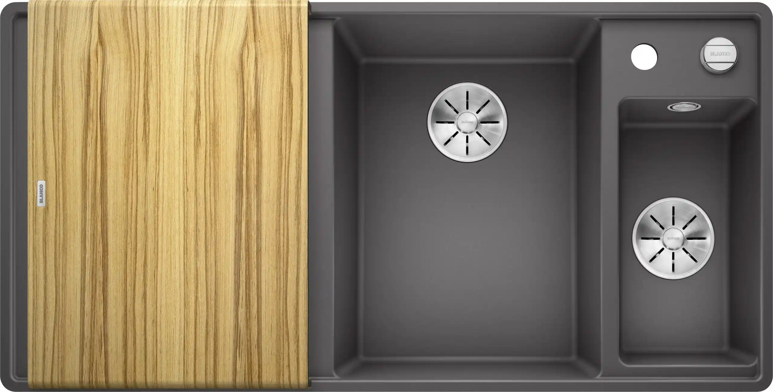 Deze Blanco Axia III 6 S-F 523484 anderhalve keukenspoelbak rechts in Silgranit rotsgrijs is geschikt voor zowel vlakbouw als onderbouw. Het product is vervaardigd uit een krasbestendig en duurzaam materiaal dat tot 80% uit natuurlijk graniet bestaat, bekend als SILGRANIT® PuraDur®. De antibacteriële en onderhoudsvriendelijke oppervlakte vermindert de groei van bacteriën met tot wel 98%, dankzij de Hygiene+Plus technologie. Deze spoelbak is hittebestendig tot 280 °C. Het product wordt geleverd met een verborgen overloop, bekend als C-overflow®, een verschuifbaar snijplankje en een uitneembare schaal. De afmetingen van het extra bakje zijn 18 x 34,5 cm met een diepte van 13 cm. Er zijn twee doorboorde kraangaten aanwezig. Het InFino® afloopsysteem is in elke functionele toestand vlak ingebouwd. De spoelbak is eenvoudig te reinigen door het ontbreken van scherpe randen en voegen en kan gemakkelijk in twee componenten worden gedemonteerd voor reiniging. Inclusief af- en overloopgarnituur met afstandsbediening voor de afvoer, bedienbaar via een draaiknop.