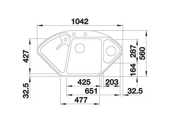 - 2 gaten voor kraan, middenafvoer InFino® systeem