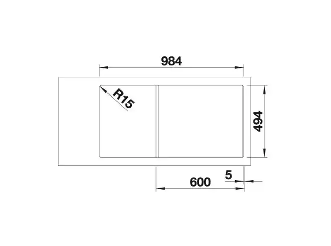 - Afmetingen van de spoelbak (B x D): 15,2 x 29,6 cm