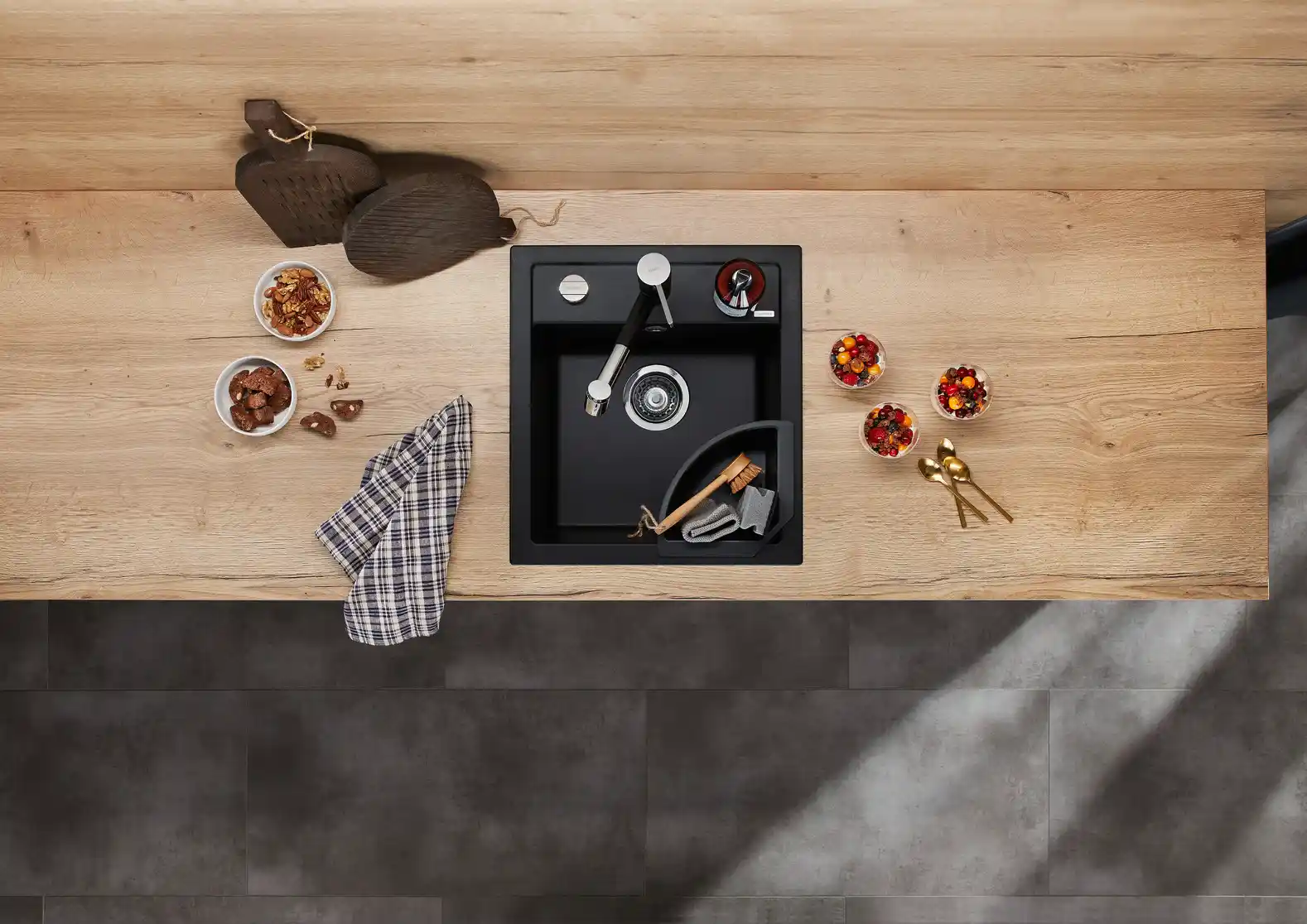 - Krasbestendig, duurzaam materiaal gemaakt van tot 80% natuurlijk graniet (SILGRANIT® PuraDur®)