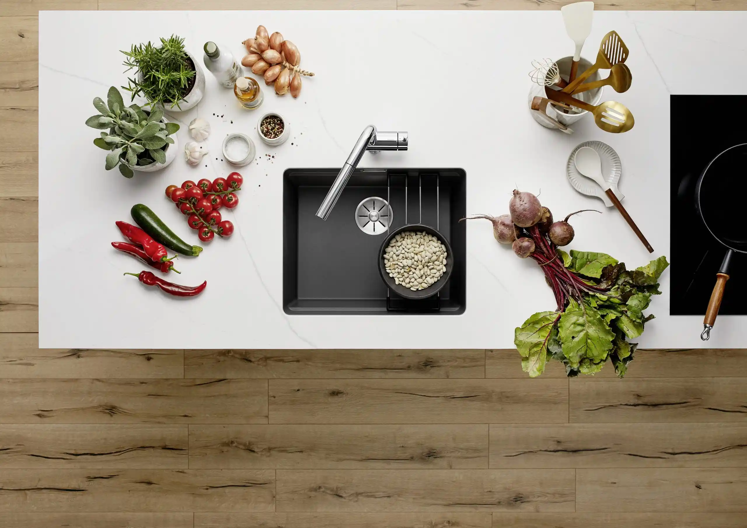 Blanco specialiseert zich in alles wat met de waterzone van de keuken te maken heeft en biedt complete, goed doordachte oplossingen voor thuisgebruik. Het merk staat bekend om zijn perfect op elkaar afgestemde systemen die zowel functioneel als visueel samenkomen. Denk hierbij aan spoelbakken, kwalitatieve kranen, systemen voor koolzuurhoudend en gefilterd water, koeling en een breed scala aan accessoires — van zeepdispensers tot slimme opbergoplossingen voor afval en onderkasten. Dankzij het uitgebreide aanbod in functies, stijlen, kleuren en materialen kunnen keukenprofessionals creatief aan de slag, terwijl consumenten volop keuze hebben om hun keuken volledig naar eigen wens in te richten.*Geschatte leverdatum