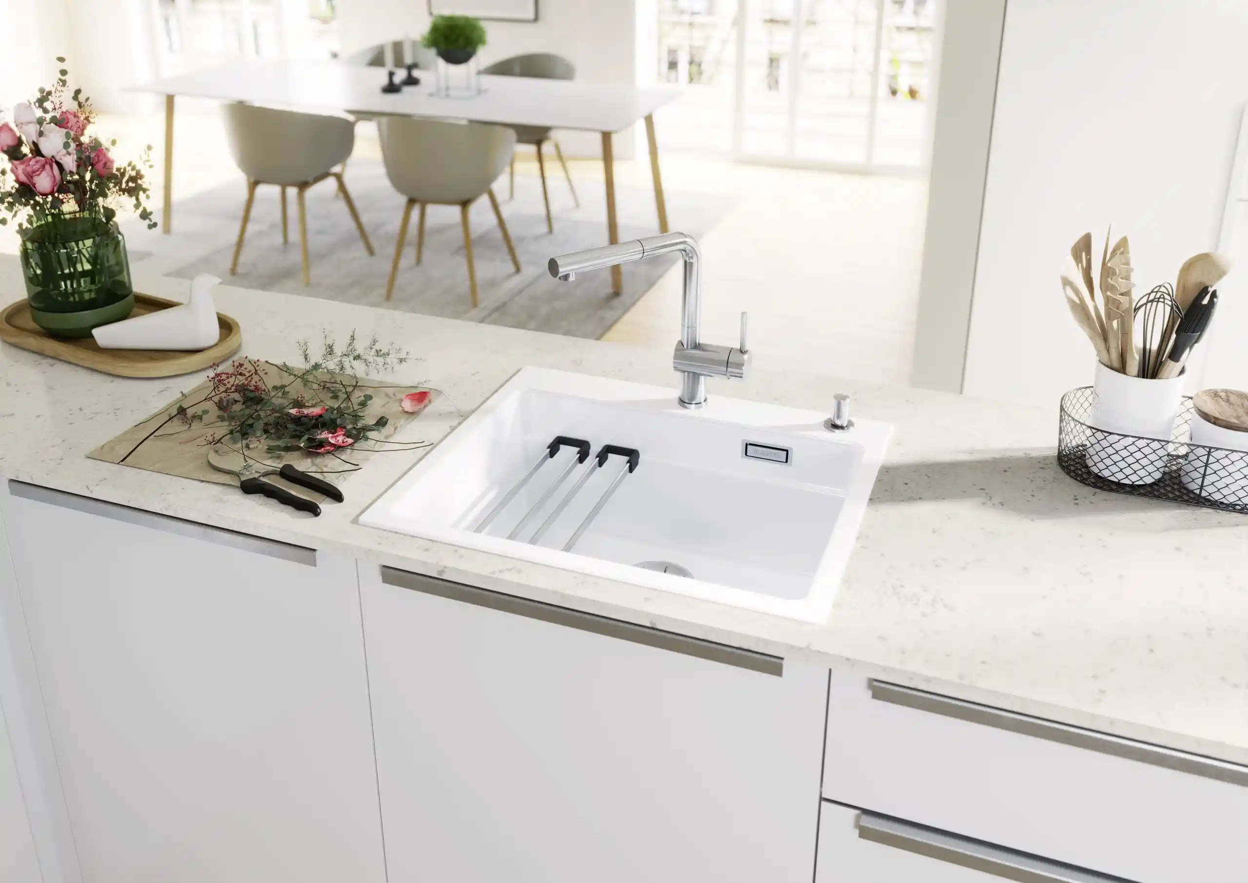 Blanco specialiseert zich in alles wat met de waterzone van de keuken te maken heeft en biedt complete, goed doordachte oplossingen voor thuisgebruik. Het merk staat bekend om zijn perfect op elkaar afgestemde systemen die zowel functioneel als visueel samenkomen. Denk hierbij aan spoelbakken, kwalitatieve kranen, systemen voor koolzuurhoudend en gefilterd water, koeling en een breed scala aan accessoires — van zeepdispensers tot slimme opbergoplossingen voor afval en onderkasten. Dankzij het uitgebreide aanbod in functies, stijlen, kleuren en materialen kunnen keukenprofessionals creatief aan de slag, terwijl consumenten volop keuze hebben om hun keuken volledig naar eigen wens in te richten.*Geschatte leverdatum