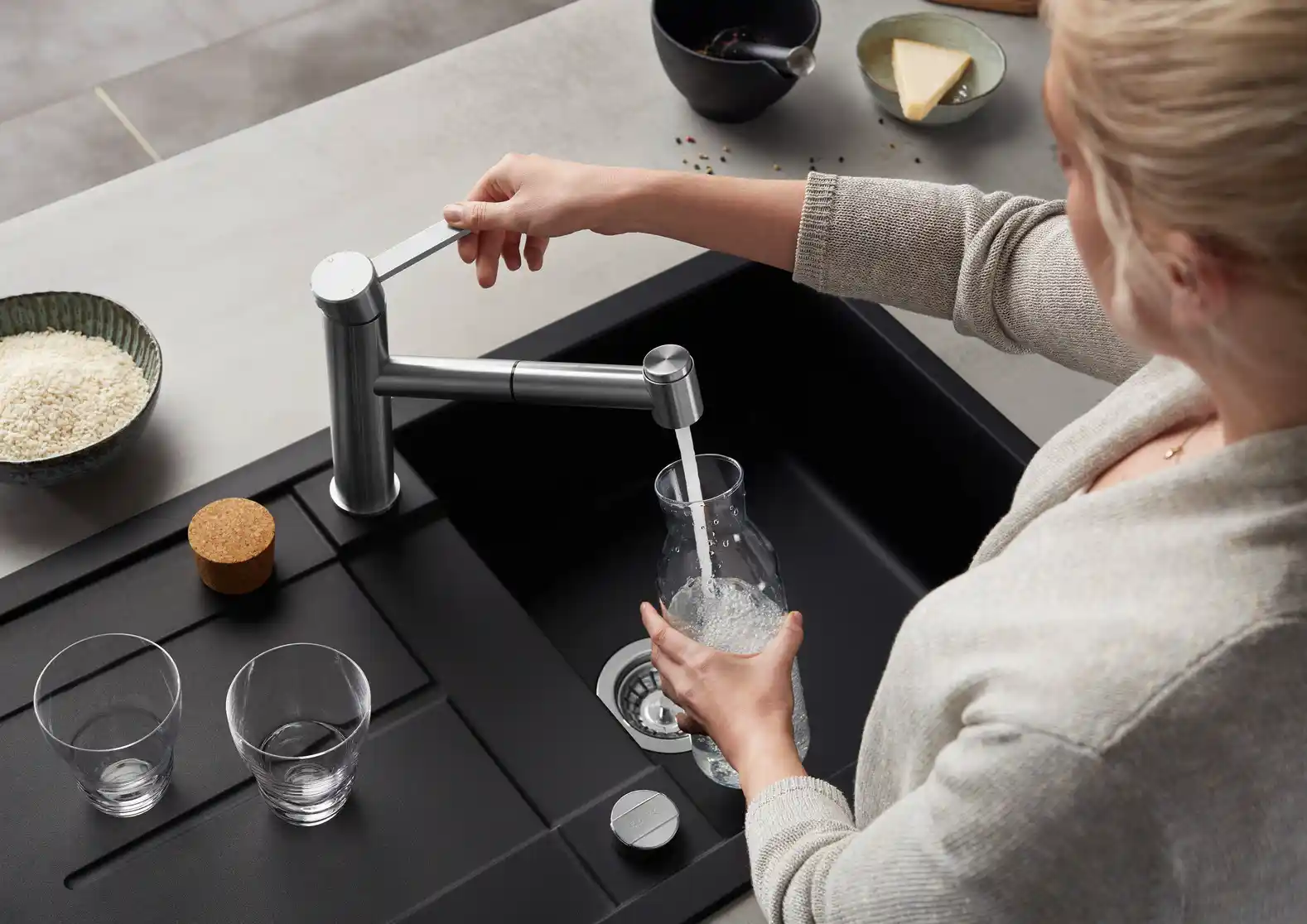 Blanco specialiseert zich in alles wat met de waterzone van de keuken te maken heeft en biedt complete, goed doordachte oplossingen voor thuisgebruik. Het merk staat bekend om zijn perfect op elkaar afgestemde systemen die zowel functioneel als visueel samenkomen. Denk hierbij aan spoelbakken, kwalitatieve kranen, systemen voor koolzuurhoudend en gefilterd water, koeling en een breed scala aan accessoires — van zeepdispensers tot slimme opbergoplossingen voor afval en onderkasten. Dankzij het uitgebreide aanbod in functies, stijlen, kleuren en materialen kunnen keukenprofessionals creatief aan de slag, terwijl consumenten volop keuze hebben om hun keuken volledig naar eigen wens in te richten.*Geschatte leverdatum