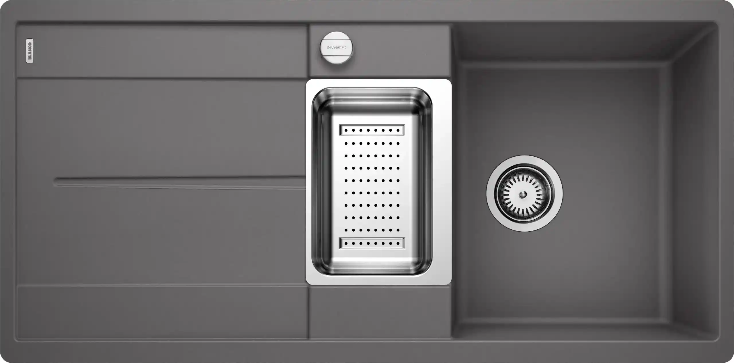 Blanco Metra 6 S-F 519118 Enkele Spoelbak Silgranit Rotsgrijs Omkeerbaar Vlak en Onderbouw Excenter