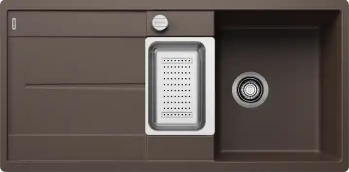 Deze Blanco Metra 6 S-F 519120 enkele keukenspoelbak is vervaardigd uit het duurzame materiaal Silgranit Café en biedt veelzijdige inbouwmogelijkheden, zowel voor vlakbouw als onderbouw. De spoelbak kan zowel links als rechts worden geïnstalleerd, afhankelijk van de voorkeur en keukenindeling. Het materiaal bestaat voor maximaal 80% uit natuurlijk graniet, wat zorgt voor een krasbestendige en robuuste structuur. De antibacteriële en onderhoudsvriendelijke oppervlakte vermindert de groei van bacteriën met tot wel 98%, dankzij de Hygiene+Plus technologie. Deze spoelbak is hittebestendig tot 280 °C, wat zorgt voor extra veiligheid en duurzaamheid in de keuken. De set wordt geleverd inclusief af- en overloopgarnituur met een handige afvoerbediening, die eenvoudig te bedienen is via een draaiknop. Daarnaast is er een uitneembare schaal inbegrepen en zijn er vier optionele, voorgestoken boorgaten beschikbaar voor extra functionaliteit.