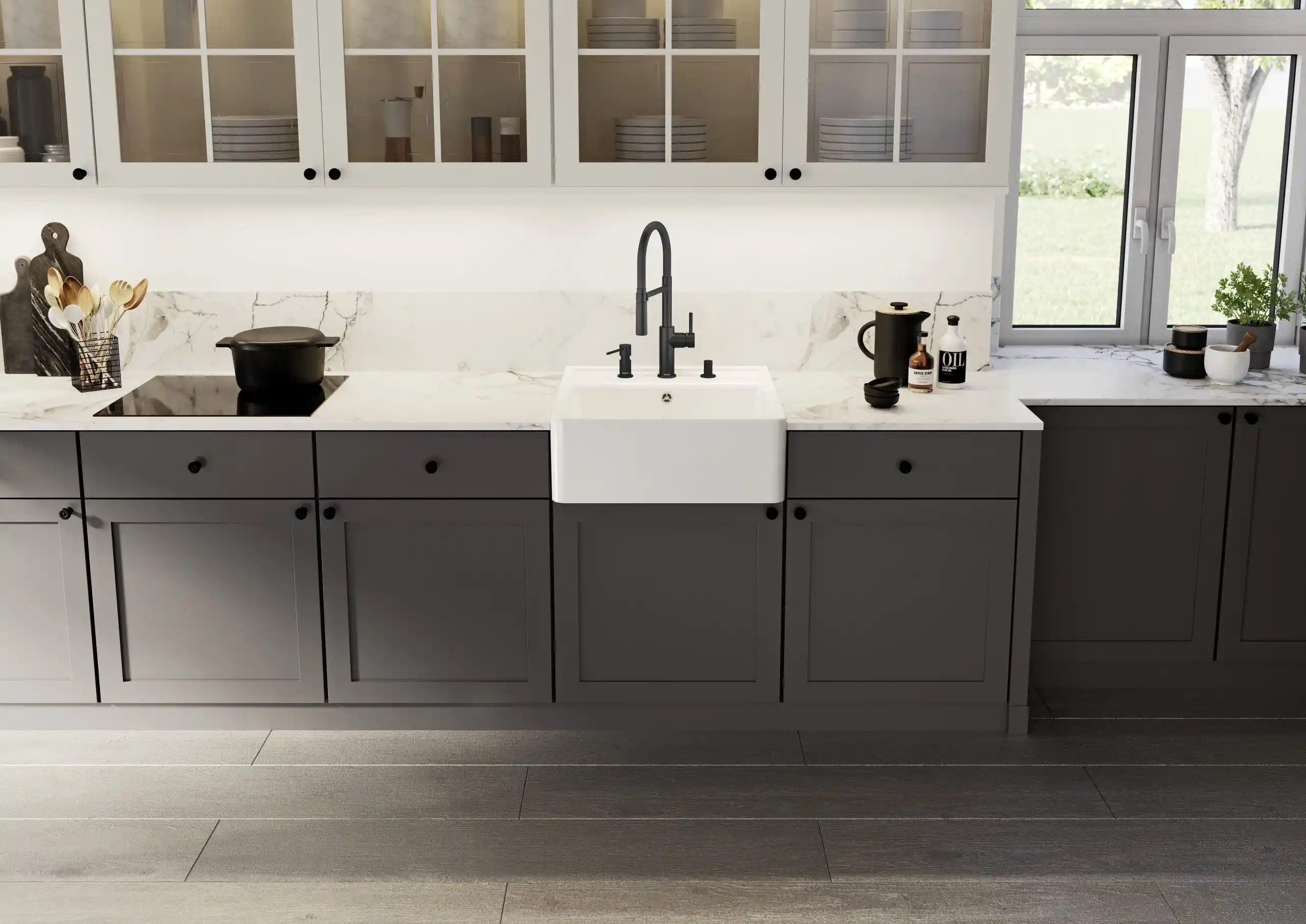 Blanco specialiseert zich in alles wat met de waterzone van de keuken te maken heeft en biedt complete, goed doordachte oplossingen voor thuisgebruik. Het merk staat bekend om zijn perfect op elkaar afgestemde systemen die zowel functioneel als visueel samenkomen. Denk hierbij aan spoelbakken, kwalitatieve kranen, systemen voor koolzuurhoudend en gefilterd water, koeling en een breed scala aan accessoires — van zeepdispensers tot slimme opbergoplossingen voor afval en onderkasten. Dankzij het uitgebreide aanbod in functies, stijlen, kleuren en materialen kunnen keukenprofessionals creatief aan de slag, terwijl consumenten volop keuze hebben om hun keuken volledig naar eigen wens in te richten.*Geschatte leverdatum