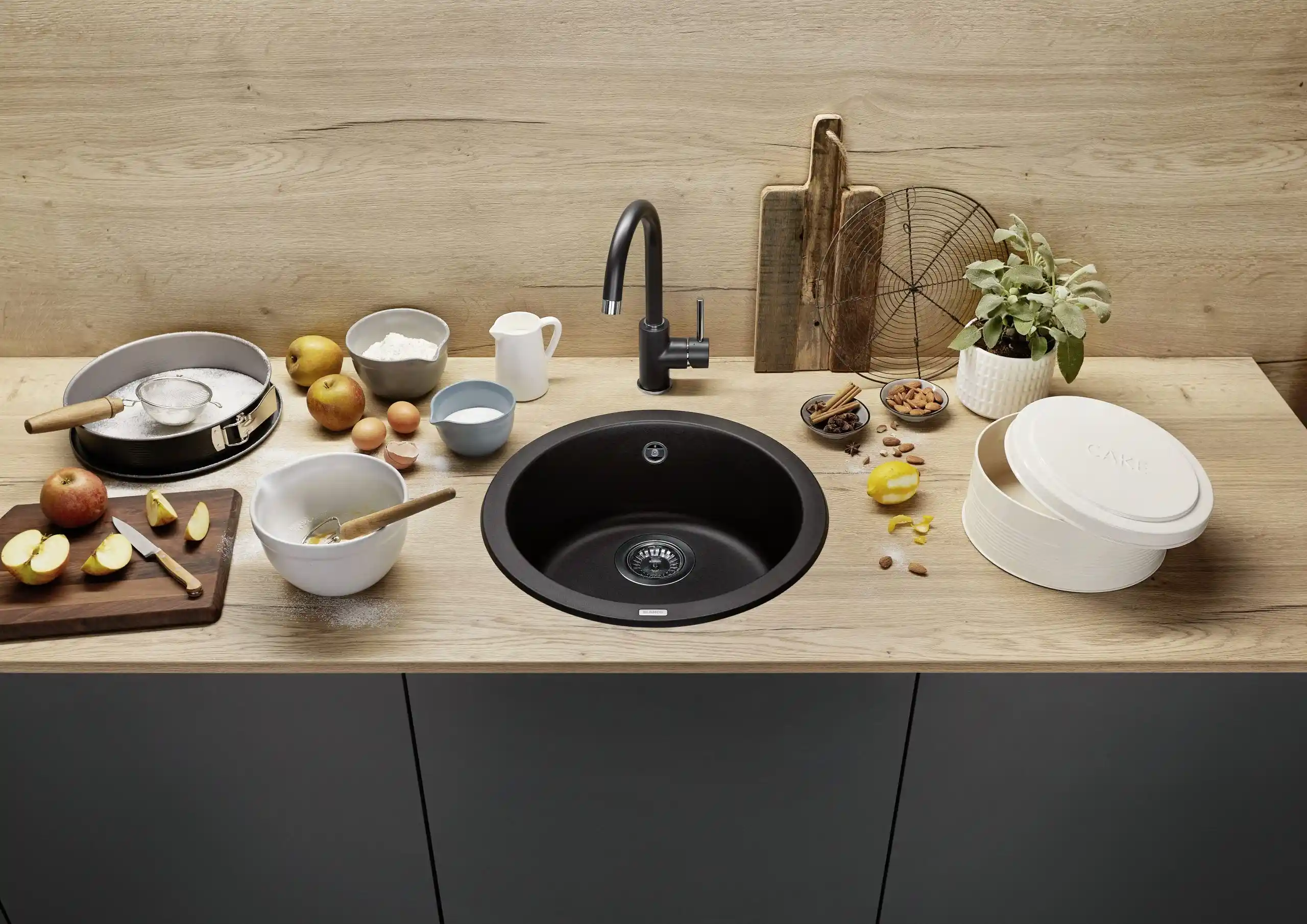 - Productnaam: Blanco Rondo 525959 Keukenspoelbak Rond Silgranit Zwart Opbouw
