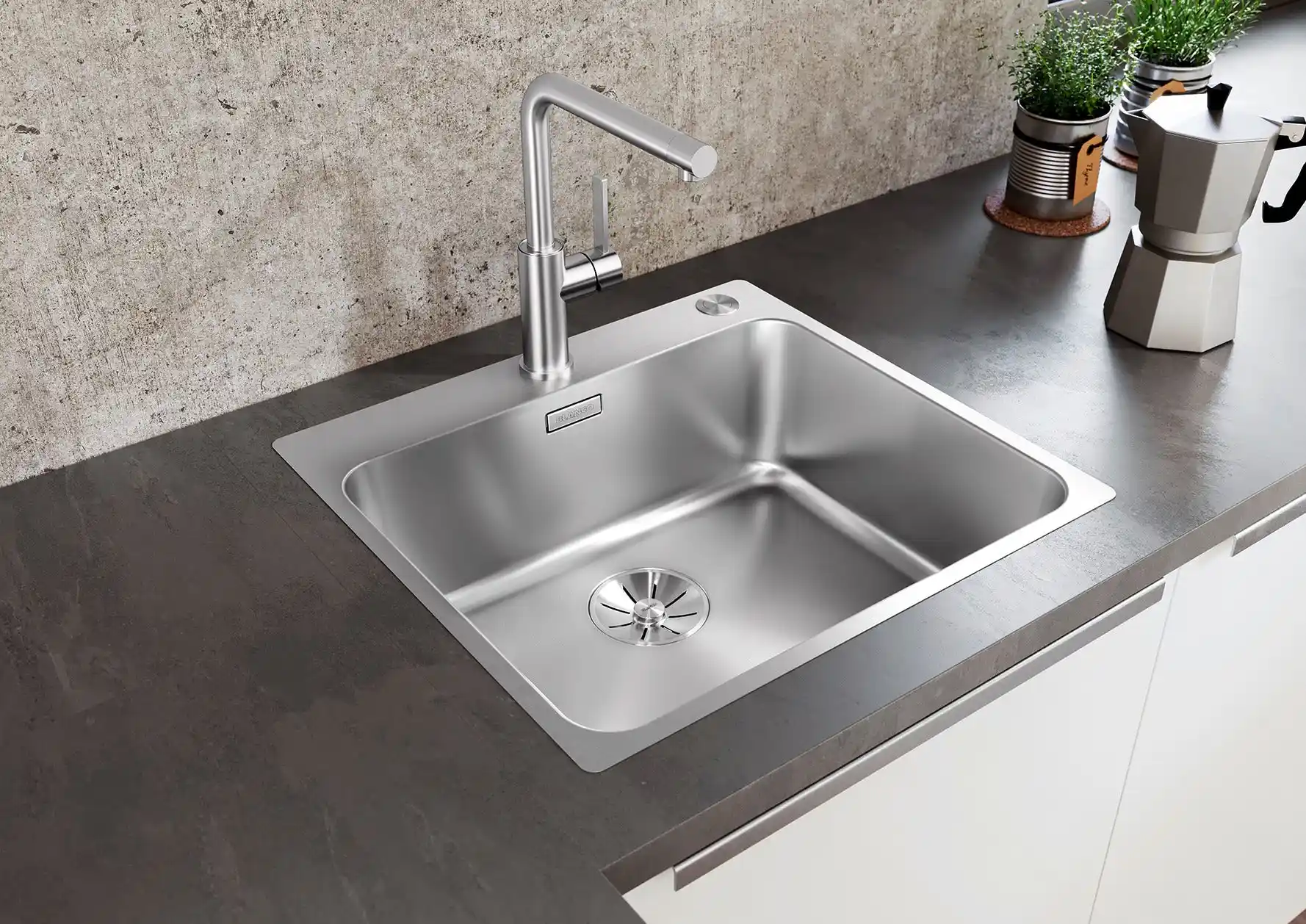 Blanco specialiseert zich in alles wat met de waterzone van de keuken te maken heeft en biedt complete, goed doordachte oplossingen voor thuisgebruik. Het merk staat bekend om zijn perfect op elkaar afgestemde systemen die zowel functioneel als visueel samenkomen. Denk hierbij aan spoelbakken, kwalitatieve kranen, systemen voor koolzuurhoudend en gefilterd water, koeling en een breed scala aan accessoires — van zeepdispensers tot slimme opbergoplossingen voor afval en onderkasten. Dankzij het uitgebreide aanbod in functies, stijlen, kleuren en materialen kunnen keukenprofessionals creatief aan de slag, terwijl consumenten volop keuze hebben om hun keuken volledig naar eigen wens in te richten.*Geschatte leverdatum