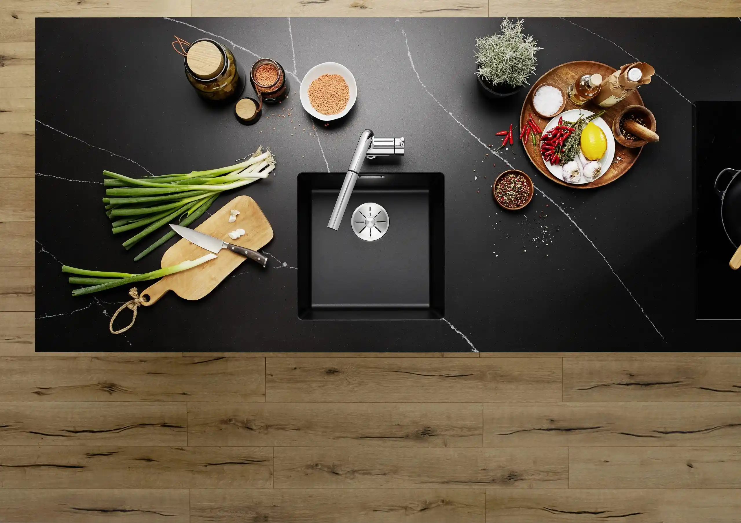 Blanco specialiseert zich in alles wat met de waterzone van de keuken te maken heeft en biedt complete, goed doordachte oplossingen voor thuisgebruik. Het merk staat bekend om zijn perfect op elkaar afgestemde systemen die zowel functioneel als visueel samenkomen. Denk hierbij aan spoelbakken, kwalitatieve kranen, systemen voor koolzuurhoudend en gefilterd water, koeling en een breed scala aan accessoires — van zeepdispensers tot slimme opbergoplossingen voor afval en onderkasten. Dankzij het uitgebreide aanbod in functies, stijlen, kleuren en materialen kunnen keukenprofessionals creatief aan de slag, terwijl consumenten volop keuze hebben om hun keuken volledig naar eigen wens in te richten.*Geschatte leverdatum