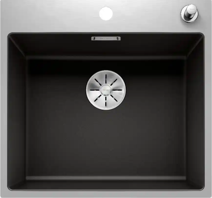Blanco Subline 500-IF/A Steelframe 525999 Enkele Spoelbak Silgranit Zwart Vlakbouw Opbouw Excenter