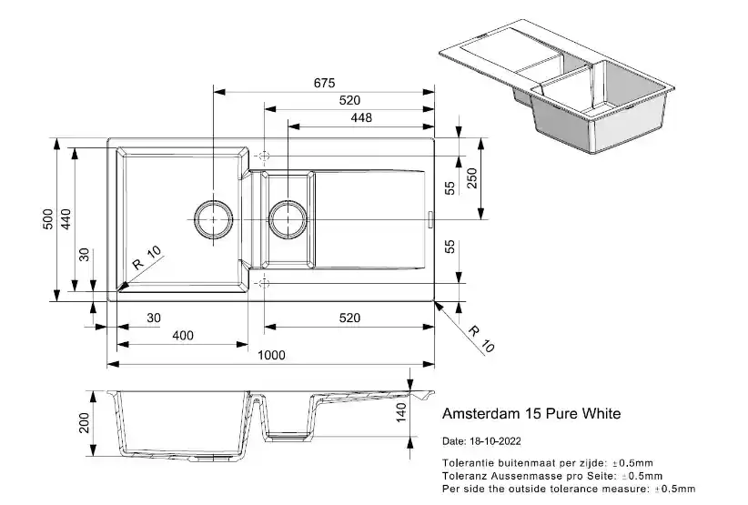 - Productnaam: Reginox Amsterdam 15 Pure White R30950 Anderhalve Keukenspoelbak Graniet Omkeerbaar Opbouw