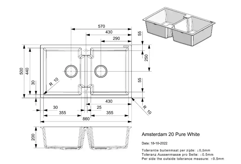 - Productnaam: Reginox Amsterdam 20 Pure White R30998 Dubbele Keukenspoelbak Graniet Opbouw