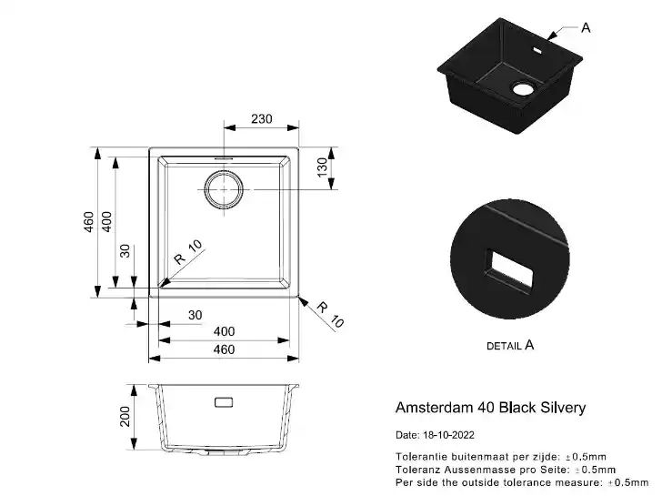 - Productnaam: Reginox Amsterdam 40 x 40 Black Silvery R32312 Enkele Keukenspoelbak Graniet Onderbouw Of Opbouw
