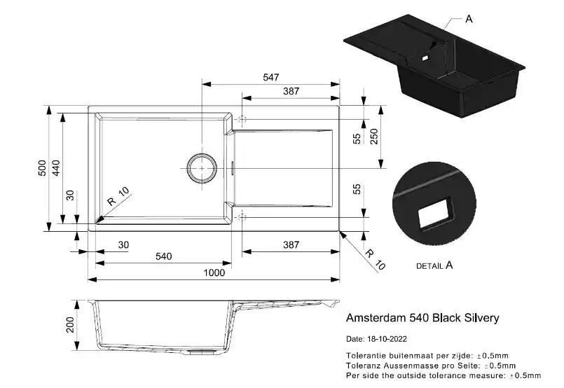 - Productnaam: Reginox Amsterdam 540 Black Silvery R30806 Enkele Keukenspoelbak Graniet Opbouw