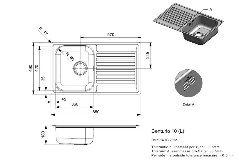 - Productnaam: Reginox Centurio 10 OKG R19542 Enkele Keukenspoelbak RVS Omkeerbaar Vlakbouw Of Opbouw