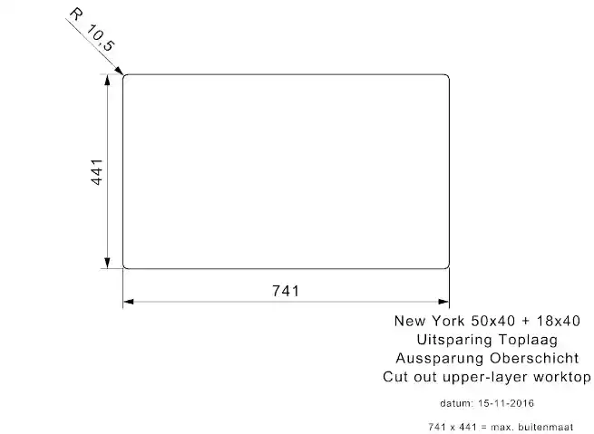 - Reginox New York 50 x 40 + 18 x 40 OKGD Comfort R27837 Anderhalve Keukenspoelbak Links RVS Onderbouw Vlakbouw Opbouw