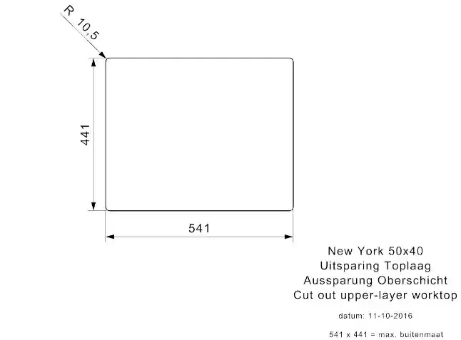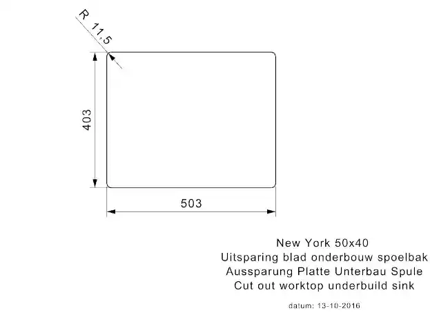 - Reginox New York 50 x 40 OKG Comfort R27646 Enkele Keukenspoelbak RVS Onderbouw Vlakbouw Opbouw