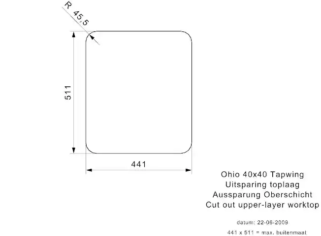 - Productnaam: Reginox Ohio 40 x 40 Tapwing OKG R15803 Enkele Keukenspoelbak RVS Onderbouw Vlakbouw Opbouw