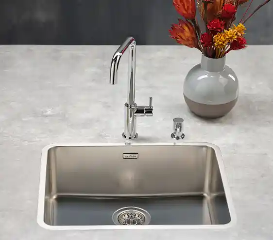 Deze Reginox Ohio 50 x 40 OKG R15780 enkele keukenspoelbak is vervaardigd uit hoogwaardig roestvrij staal, wat zorgt voor een poriënvrij, hygiënisch en bijzonder robuust materiaal dat duurzaam roestvrij blijft. De spoelbak is geschikt voor zowel bovenbouw, onderbouw als vlakbouw installatie, waardoor het veelzijdig toepasbaar is in verschillende keukenontwerpen. Het product wordt geleverd met een handige zeefkorfventiel en een af- en overloopgarnituur die handmatig bediend kan worden door te drukken of te trekken aan het afvoerventiel. Daarnaast zijn bevestigingsklemmen inbegrepen, wat de installatie vergemakkelijkt. Deze spoelbak kan gecombineerd worden met een standaard kraan voor montage op het werkblad, wat bijdraagt aan de functionaliteit en esthetiek van uw keuken.