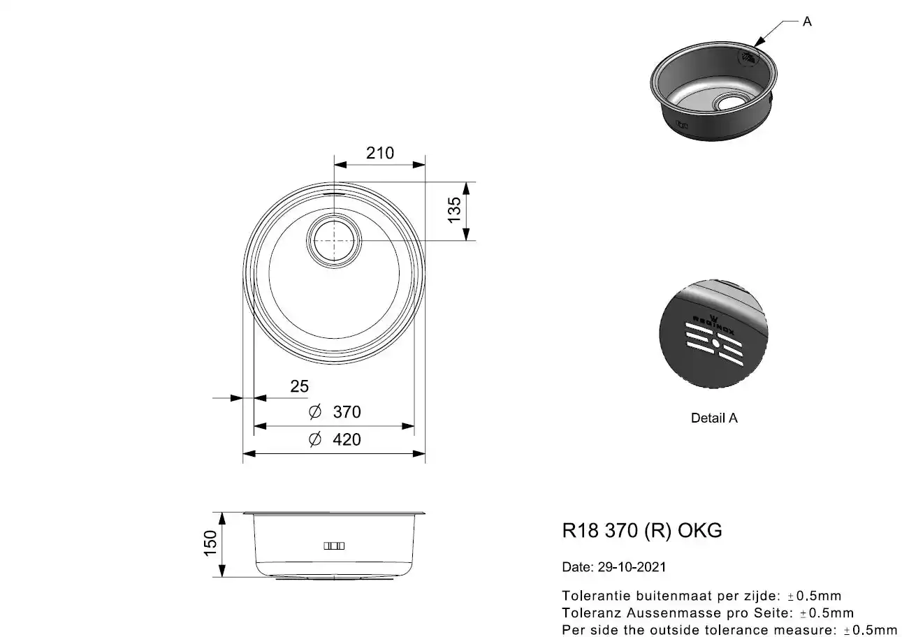 - Reginox R18 370 OKG R00311 Enkele Keukenspoelbak Rond RVS Gepolijst 37 cm Opbouw