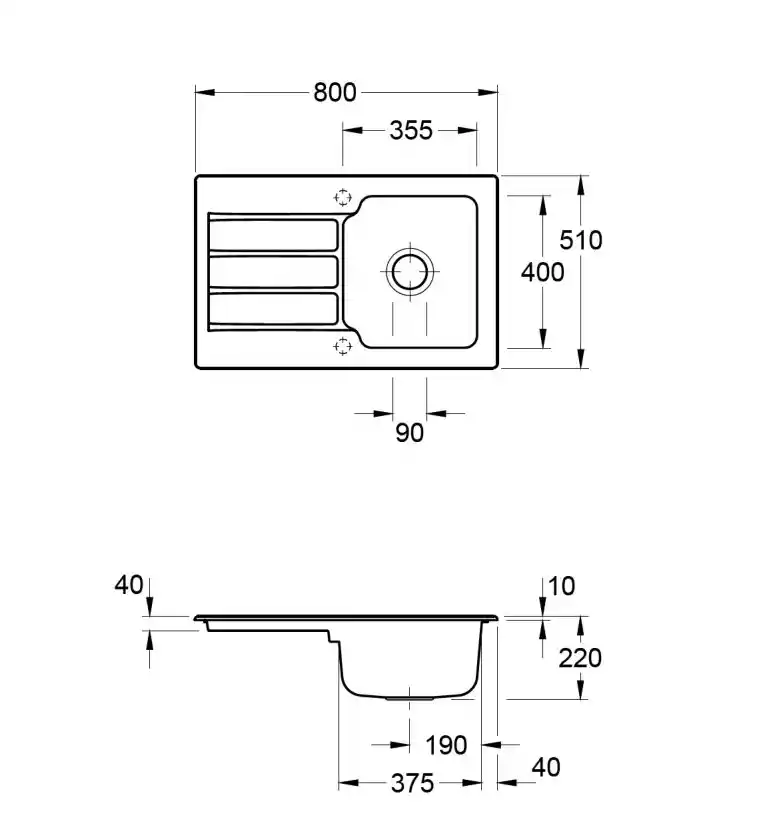 - Links of rechts te installeren spoelbak