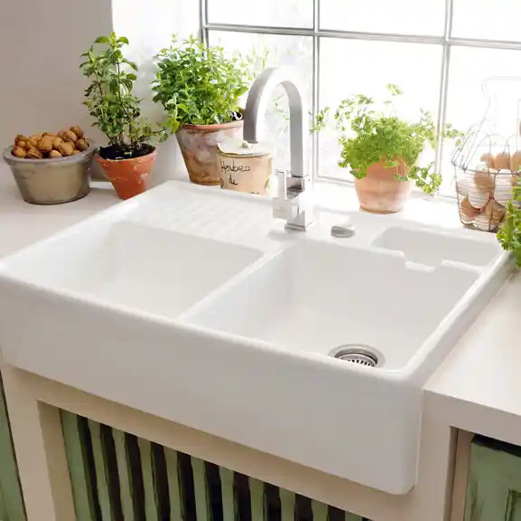 - Villeroy & Boch Dubbele Keukenspoelbak Keramiek Wit Alpin Hoogglans Opbouw