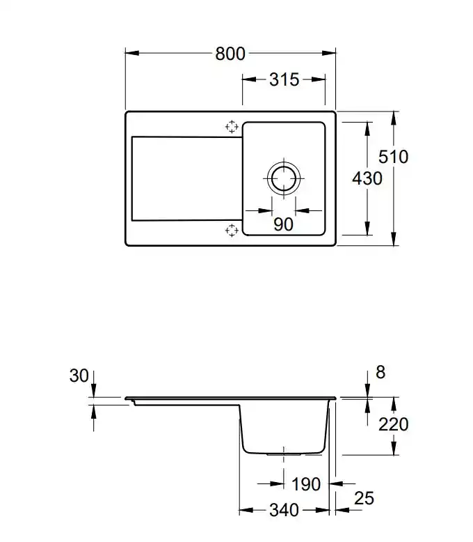 - Spoelbak links of rechts te installeren