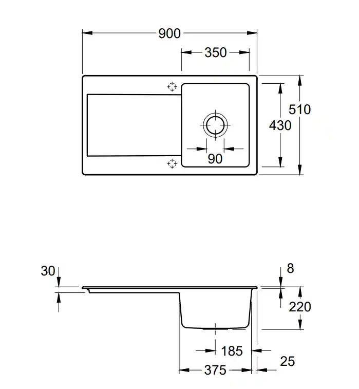 - Villeroy & Boch Siluet 50 Keukenspoelbak Keramiek Chromit Omkeerbaar Opbouw