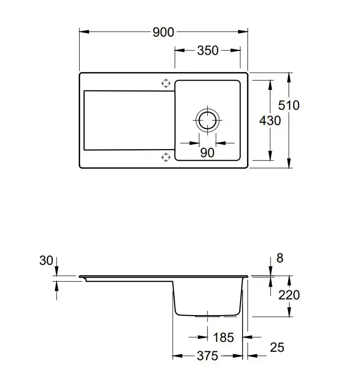 - Spoelbak links of rechts te installeren