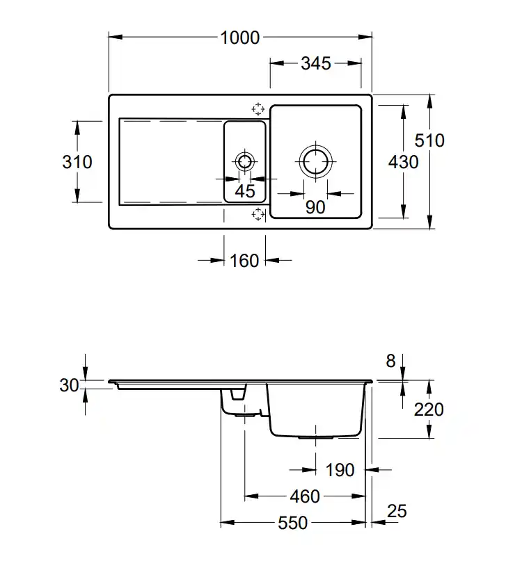 Wilt u een kraangat in uw artikel? Vermeld dan alstublieft de gewenste positie in het opmerkingenveld bij uw bestelling. Let op: artikelen met een kraangat op maat worden speciaal voor u gemaakt en vallen daarom buiten het herroepingsrecht.